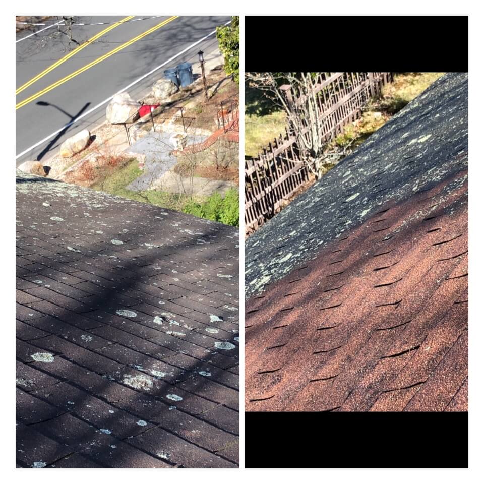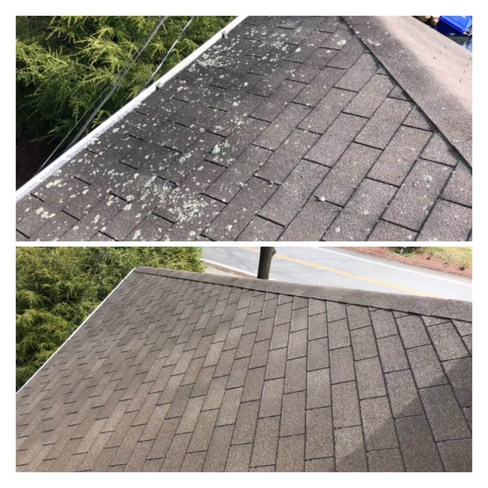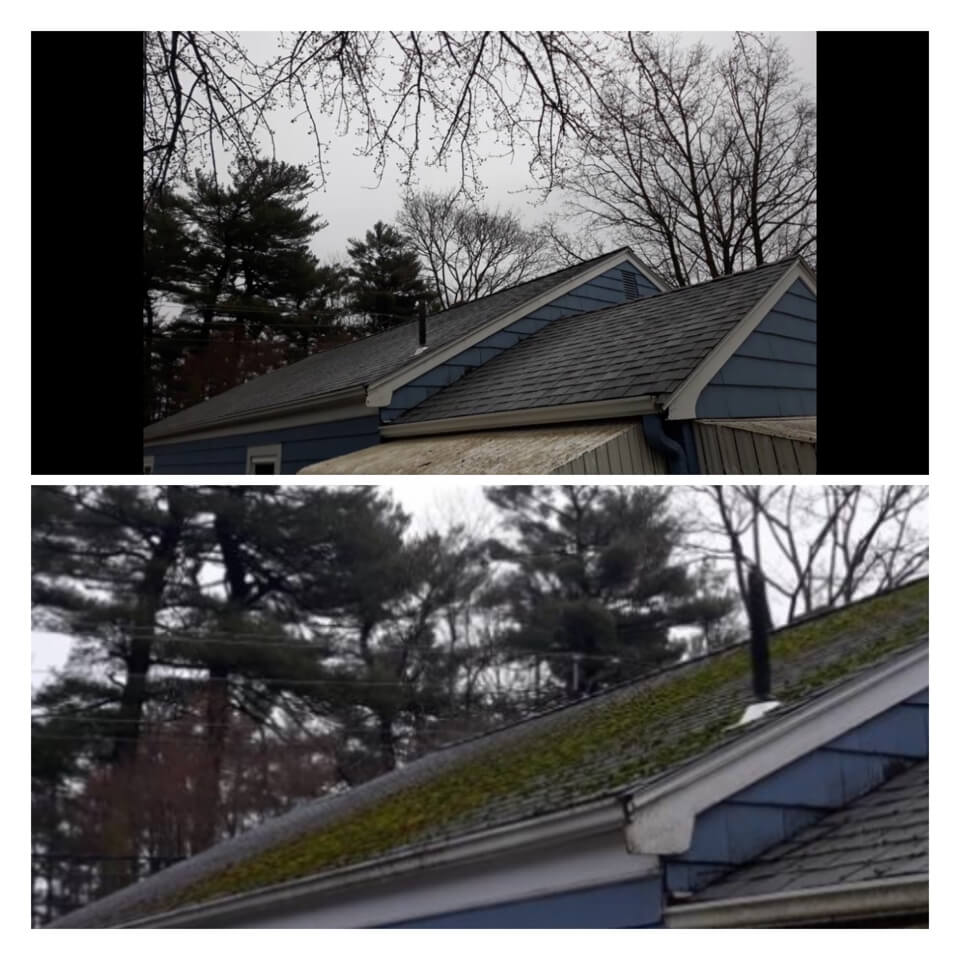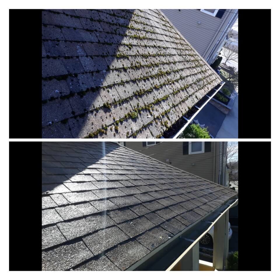 HiCleaners is the most experienced company in Billerica, MA that deals with roof washing and roof soft washing. All of our employees are trained to recognize precise solution mixing ratios to provide you with the safest and most effective soft washing service. Roofs are a commonly neglected part of a house due to the fact that most people don’t have ladders to access it, so it is very easy to just leave it alone and forget about problems that may start to arise. Just like many home owners, discoloration and small bits of moss on a roof can be overlooked because of the misconception that it is just aesthetic. However, it isn’t just aesthetic, the moss slowly lifts the granules off the shingles which in turn shorten the life of the shingle. The moss also spreads, just like any bacteria if it is left alone for too long, it can quickly become a problem that spirals out of control. Call HiCleaners for a free quote, we only use the most advanced eco-friendly solutions and equipment to make sure the job is done right, for the safety of the employees, your plants, grass, pets, and children.