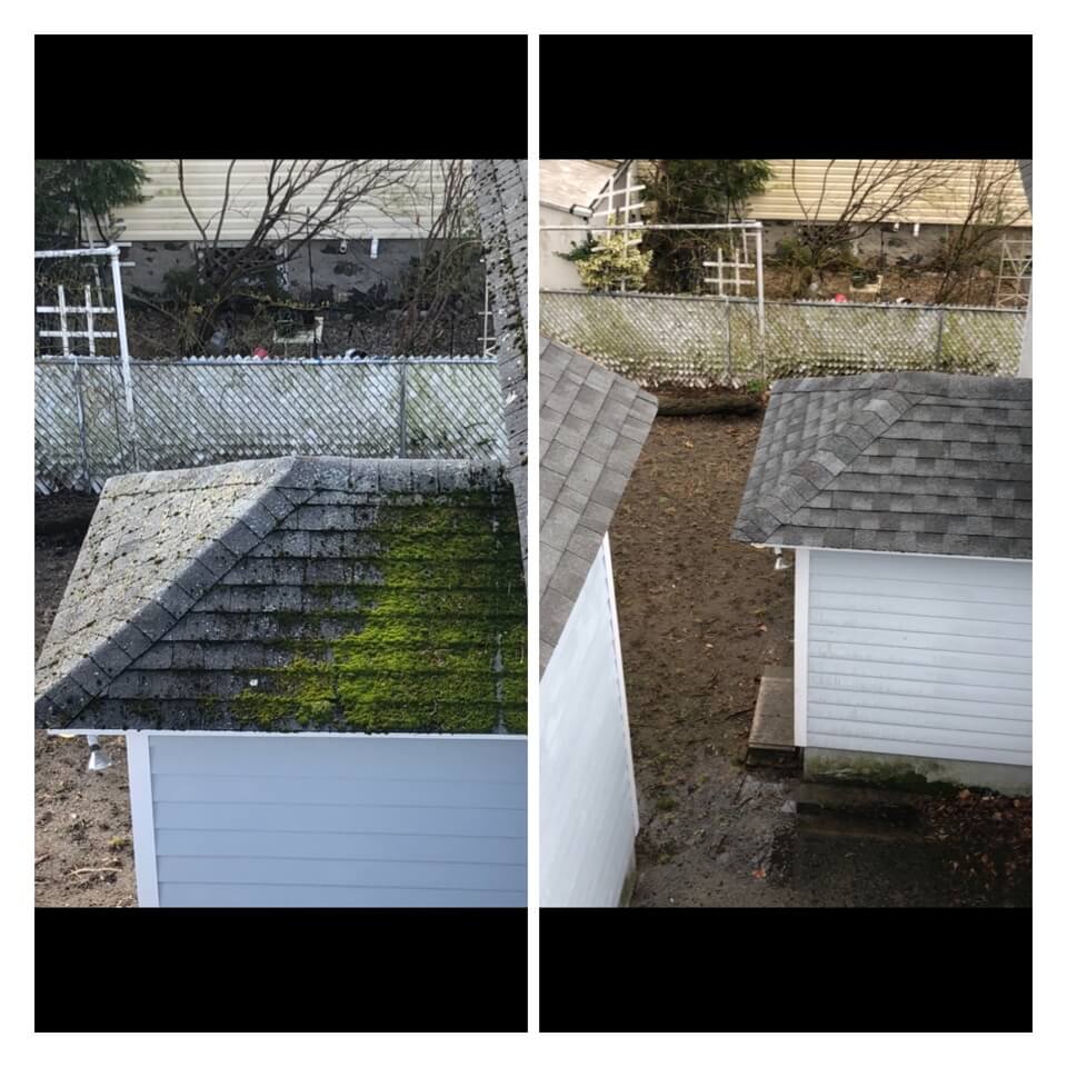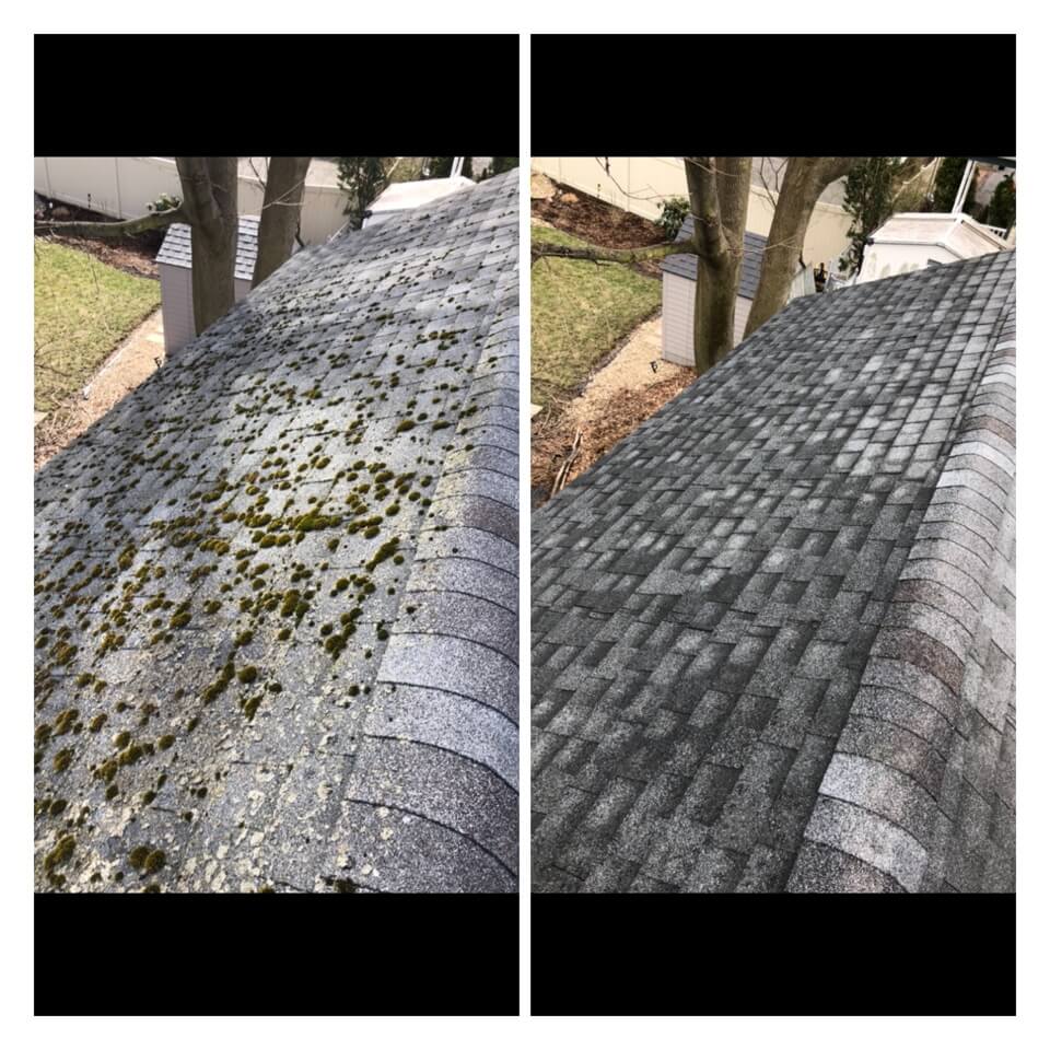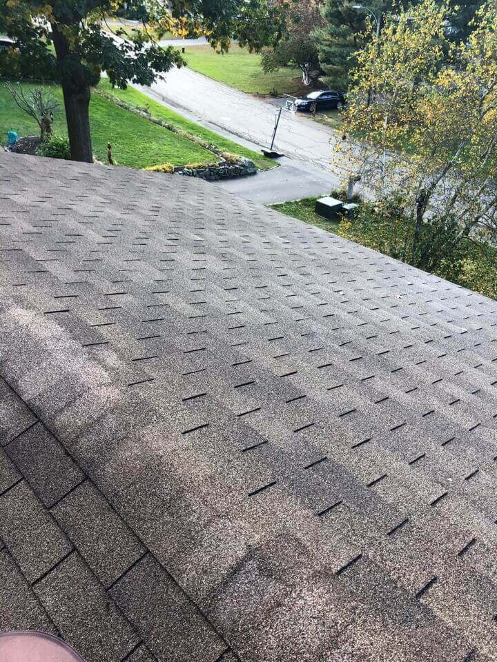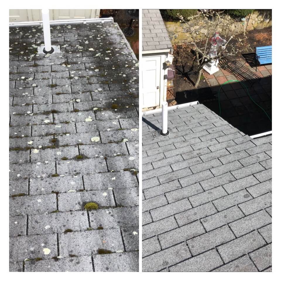 HiCleaners is the most experienced company in Billerica, MA that deals with roof washing and roof soft washing. All of our employees are trained to recognize precise solution mixing ratios to provide you with the safest and most effective soft washing service. Roofs are a commonly neglected part of a house due to the fact that most people don’t have ladders to access it, so it is very easy to just leave it alone and forget about problems that may start to arise. Just like many home owners, discoloration and small bits of moss on a roof can be overlooked because of the misconception that it is just aesthetic. However, it isn’t just aesthetic, the moss slowly lifts the granules off the shingles which in turn shorten the life of the shingle. The moss also spreads, just like any bacteria if it is left alone for too long, it can quickly become a problem that spirals out of control. Call HiCleaners for a free quote, we only use the most advanced eco-friendly solutions and equipment to make sure the job is done right, for the safety of the employees, your plants, grass, pets, and children.